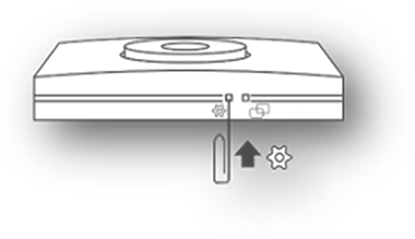 - Prima o botão de definições brevemente com um objeto pontiagudo colocando o(s) produto(s) no modo de emparelhamento, fazendo com que a janela/estore exterior/cortina se mova ligeiramente para confirmação.