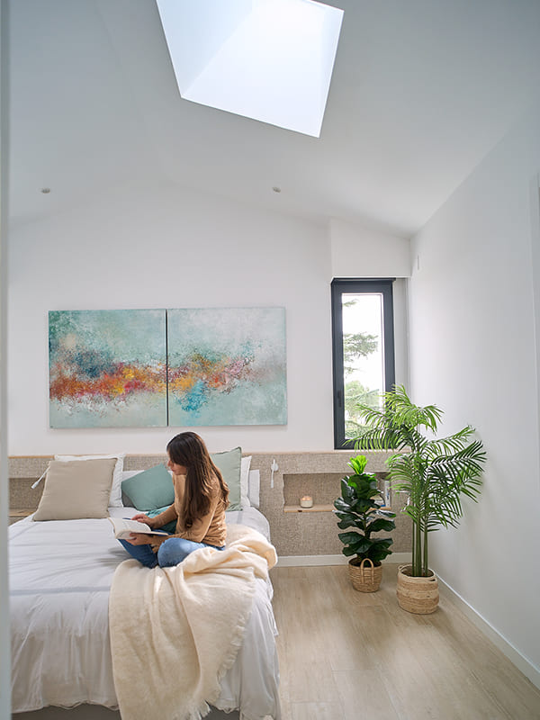 Convide a luz do dia e o ar fresco a entrar no quarto de dormir e melhore o seu ciclo de sono e saúde em geral. O nascer e o pôr do sol ditam o ciclo natural de dormir-despertar, conhecido como o ritmo circadiano, que afeta os padrões de sono, o apetite e a atividade cerebral. Pode melhorar o seu ritmo circadiano trazendo luz natural para o seu quarto de dormir com janelas de telhado e clarabóias VELUX.